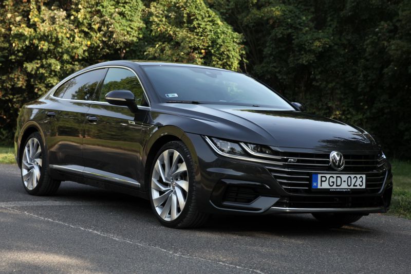 A stílusról nem kell sokat beszélni, elég csak rápillantani az Arteonra, amely megjelenése óta a Volkswagen európai csúcsmodelljének is tekinthető, ha a Tuareget nem számítjuk annak. A keret nélküli ablakok és a forma „kilóra megveszi” a szemlélőt, ráadásul a tesztautó megkapta az R-Line sportcsomagot is, amellyel még „ütősebb” a megjelenés. Sokkal sportosabbá varázsolja a négyajtós kupét, a habot a tortán pedig az elődnél is használt turbina alakú keréktárcsák jelentik.