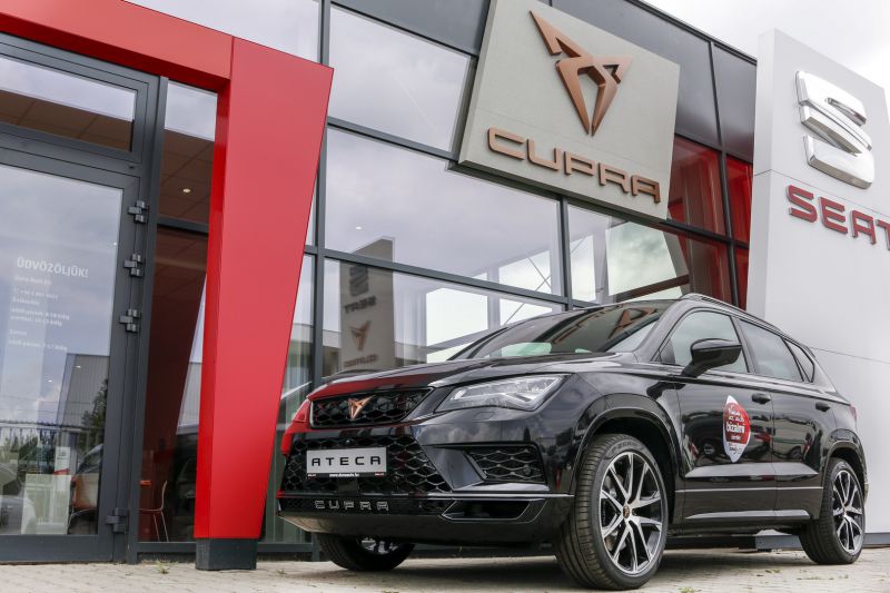 1998-at írunk, amikor a Seat harmadszor is megszerezte a világbajnoki címet a rali-vb F2-es osztályában. A tripla címszerzést követően a győztes Ibiza modellből megszületett az utcai változat, az Ibiza Cupra, melyet egy 2 literes, 16 szelepes szívó benzinmotor hajtott, 150 lóerő teljesítménnyel. A Cupra egy kitalált szó, a „cup”, mint kupa és a „racing”, mint versenyzés szóból tevődik össze, így a jelentése kupaverseny, utalva a motorsportra. Az évek során kellő hírnévre tett szert a spanyol márka sportrészlege, mert bizony a hozzáértők körében a Cupra kellő adrenalint mozgósított az erekben. Az izgalom nem véletlen, mert évről évre kategóriájukban a leggyorsabb autók között szerepelnek a Cupra modellek, mind versenypályán, mind utcán. A 2000-es évtől napjainkig így erősödött a presztízse, míg 2018-ban a Seat úgy döntött, különálló márkává lépteti elő, így immár nem csupán típusjelzést, hanem saját márkajelzést jelent a Cupra. Saját logóval rendelkezik, és a Seat márkakereskedéseken belül egyedi kialakítású Cupra-részlegben lehet megtekinteni és megvásárolni a modelleket, köztük a zászlóvivő Atecát. El is érkeztünk a leglényegesebb információhoz: Magyarországon jelenleg egyetlen hivatalos Cupra kereskedés van, ami a Duna Autó Seat márkakereskedésen belül található.