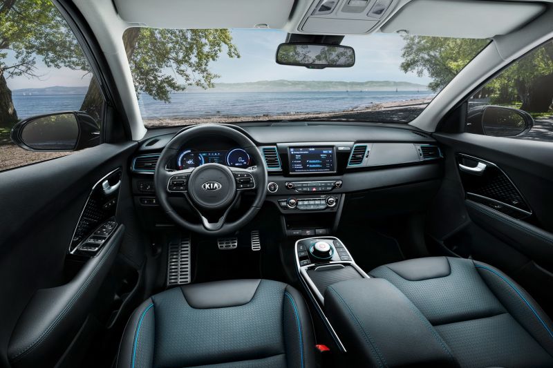 Az autó belső terére nem lehet panasz, mert hátul hatalmas a lábtér, így a magas utasok térdei is jól elférnek. A kidolgozás megfelelő, ebben a típusban már folyadékkristályos (LCD) a vezető előtti műszerfal, ez váltotta a hibrid és a plug-in hibrid Nirók hagyományos, órás műszereit. A csomagtérre sem lehet panasz, mert a konkurencia legjobb értéke az itteni 451 liter.