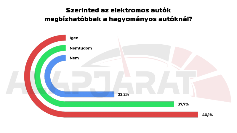 A válaszolók 40,1%-a tisztában van azzal, hogy a villanyautók kevésbé szervizigényesek, mint a hagyományos társaik, mégis meglepő, hogy 22,2%-uk úgy gondolja, hogy kevésbé megbízhatóak. Sokan (37,7%) tartózkodtak, mert nem tudták, hogy megbízhatóbbak-e vagy sem.
