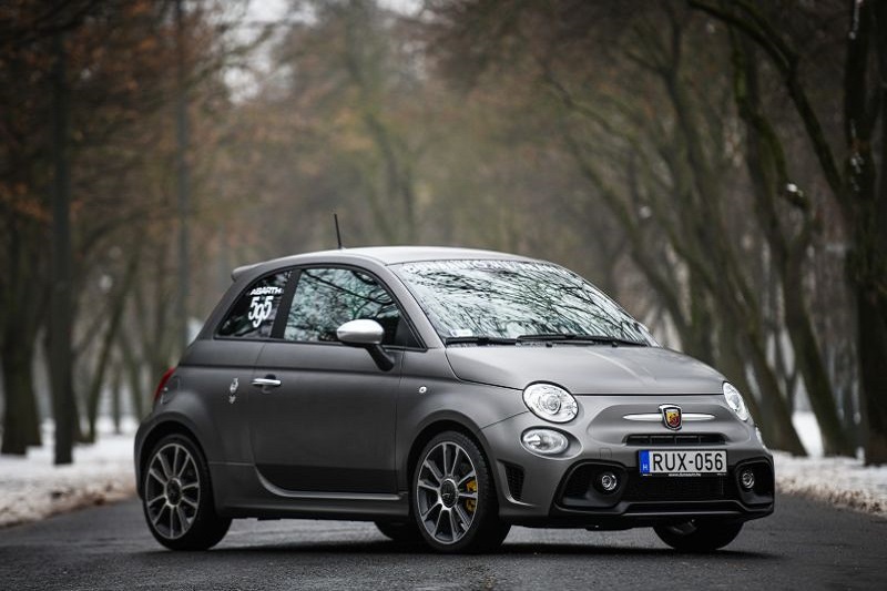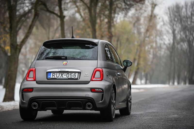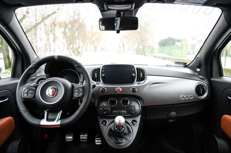 Ha valakinek nincs gyakorlata a több száz lóerős autók vezetésében, valóban érdemes egy alacsonyabb fokozatban kezdeni a sportos életmódot. Például a Fiat 500-assal, amely eleve prémiumtermék, a 165 lóerős Abarth 595-ös pedig a kínálat teteje közelében található. A jól tartó, de magasan lévő sportülések, a nyáron forró, télen hideg, teljesen fém váltókar és a csapott aljú bőrkormány megadja az alaphangot. Ezek jól előkészítik a gombnyomásra induló tűzijátékot.