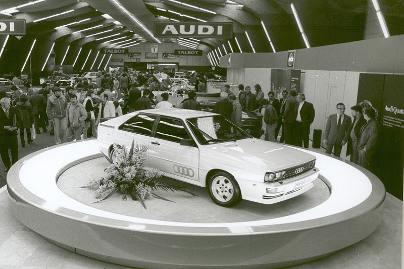 1980. márciusában a Genfi Nemzetközi Autószalonon komoly felbolydulást okozott egy összkerékhajtású, sportos kupé. Az Audi quattro volt az első olyan nagy teljesítményű jármű, amelyet összkerékhajtással szereltek. Ez a hajtáskoncepció ugyanis korábban csak a teherautók és a terepjárók kiváltsága volt. Az összkerékhajtású személyautó ötlete 1976/77 telén merült fel, amikor az Audi által a német hadseregnek kifejlesztett VW Iltis terepjáró tesztjei zajlottak. A modell jégen és havon mutatott kiemelkedő vezethetőségi jellemzői arra sarkallták a mérnököket, hogy a VW Iltis összkerékhajtás rendszerét beépítsék a sorozatgyártású Audi 80 modellbe.