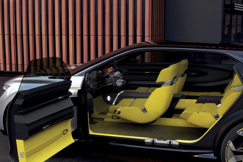 Az alap 40 kWh-s akkumulátorral 400 km-es hatótávolság realizálható, ami az utak 90%-ára elég. A fennmaradó 10%-hoz lehet a fedélzetre venni további 50 kWh kapacitást, amivel összesen 700 km-t meghaladó távolságot tud egy feltöltéssel megtenni a Renault Morphoz. Az utastérbe az egymással szembe nyíló ajtók és a B oszlop hiánya miatt könnyű a ki- és beszállás, az anyósülés nem hátra-, hanem felfordulva néz szembe a hátsókkal. Az utastér legkülönlegesebb része a kétarcú műszerfal, alapesetben csak a legfontosabb információkat kapja a sofőr, de ha úgy akarja, akkor hatalmas méretű képernyőket csalogathat elő – ennek használatát a 3-as szintű önvezető mód (pár másodperc alatt képesnek kell lennie a sofőrnek visszavenni az irányítást) esetén ajánlják a fejlesztők.