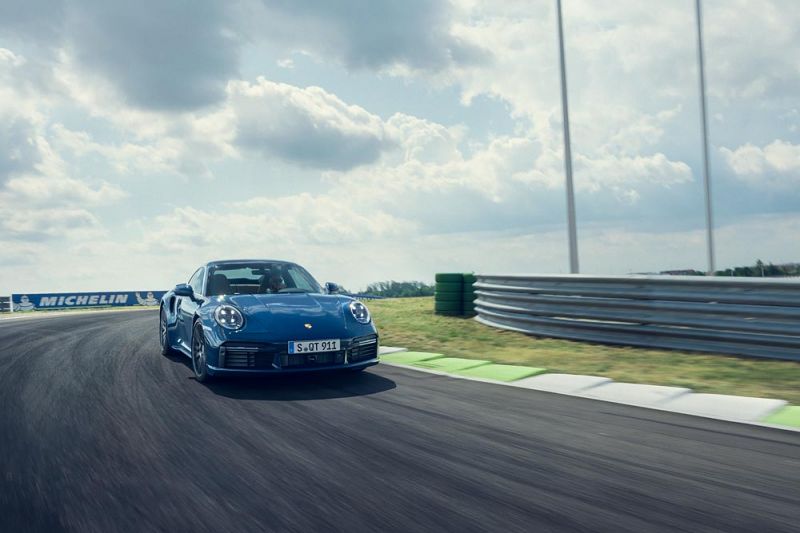 Az új 911 Turbo 3.745 cm3-es hathengeres boxermotorja immár 580 lóerős teljesítménnyel áll rajthoz és szimmetrikus változó geometriájú turbófeltöltőkkel, valamint elektronikusan vezérelt bypass szelepekkel rendelkezik. Átdolgozott töltőlevegő-hűtőrendszere és kifinomult piezo befecskendezése még jobb reakcióidőket, még nagyobb teljesítményt, bőségesebb nyomatékot és pörgős karaktert biztosít. A karosszéria szélesebb lett. Az első tengely még precízebben kormányozható a 42 mm-rel szélesebb nyomtávnak és az új, 20 colos, 255/35-ös abroncsoknak köszönhetően. A PTM aktív összkerékhajtás-vezérlés még több erőt közvetíthet előre, miközben az aktívan kormányozott hátsó tengely tapadását is növelték a mérnökök a 10 mm-rel nagyobb nyomtávnak és a 21 colos kerekekre húzott 315/30-as abroncsoknak köszönhetően. Az átalakított fékrendszer még erősebb és szériában vörös színre fényezett féknyergeket visel. Az acél féktárcsák elöl 408 mm átmérőjűek (ez 28 mm-rel több, mint korábban), és 36 mm vastagok (2 mm-es plusz). A hátsó tengelyen 30 mm vastag és 380 mm átmérőjű tárcsákat találunk.
