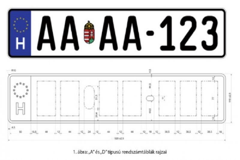 A jövő júliustól kiadható rendszámok a latin ábécé szerinti két magánhangzóból vagy két mássalhangzóból, majd újabb két betűjelből és három számjegyből állnak. Ékezetes magánhangzók vagy a dz kivételével kétjegyű mássalhangzók nem szerepelhetnek rajtuk. A táblákon Magyarország címere mellett az európai zászlót jelképező kék mezőben tizenkét sárga csillag látható fehér H jelzéssel.