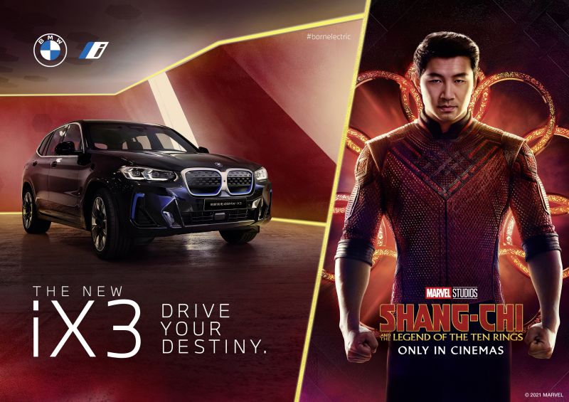 Folytatódik a BMW és a Marvel Studios sikeres együttműködése: miután a júliusban debütált Fekete özvegyben (16V) a BMW X3 és a BMW 2-es Gran Coupé is feltűnt, a szeptember elején mozikba kerülő Shang-Chi és a Tíz Gyűrű legendája (12V) című alkotásban a BMW iX3 is filmpremierjét ünnepli.