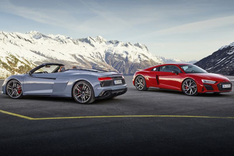 A középmotoros sportgép álló helyzetből mindössze 3,7 másodperc (Spyder: 3,8 másodperc) alatt katapultálja és vezetőjét 100 kilométer/órás tempóra, végsebessége pedig a 329 kilométer/órát (Spyder: 327 kilométer/óra) is eléri. Az új R8 szíve a jól ismert 5,2 literes, V10-es atmoszférikus FSI-motor, semmi mással össze nem hasonlítható hangjával, villámgyors gázadási reakcióival és rendkívül pörgős karakterével. Az R8 V10 performance RWD (üzemanyag-fogyasztás, kombinált (l/100 km)*: 13,0 – 12,9; szén-dioxid-kibocsátás, kombinált (g/km): 298-294) motorterében 419 kilowattot (570 LE) és 550 newtonméter – vagyis az R8 V10 RWD változaténál 10 newtonméterrel nagyobb – maximális forgatónyomatékot produkál ez az aggregát, s hétfokozatú S tronic sebességváltón keresztül hajtja meg a hátsó kerekeket. A forgatónyomatékot mechanikus differenciálzár osztja el mindenkor a pillanatnyi menethelyzetnek megfelelően a hátsó kerekek között, nedves útfelületen is optimális vonóerőátadási képességekről gondoskodva. Mint minden R8 modellben, a karosszériaszerkezet itt is Audi Space Frame (ASF) konstrukcióként alumíniumból és jelentős részben szénszálerősítésű műanyagból (CFRP) készül, az R8 V10 performance RWD Coupé saját tömege így mindössze 1590, míg a Spyder változaté 1695 kilogramm.