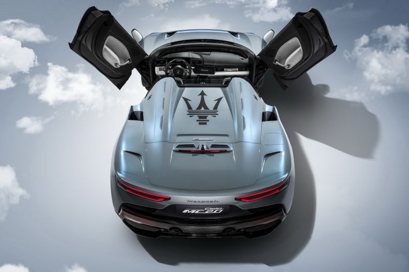A formatervezésben semmi sem öncélú vagy felesleges, mindennek megvan a maga funkciója. A mégis különleges, megkapó hatást az MC20-tól megörökölt méltán híres, felfelé nyíló pillangóajtók szolgáltatják, melyek kivitelezése garantálja, hogy a vezető és az utasok könnyedén szállhassanak ki és be. A pillangóajtók emellett bepillantást engednek a szénszálas vezetőfülkébe és a teljesen leplezetlen első kerékre egyaránt.