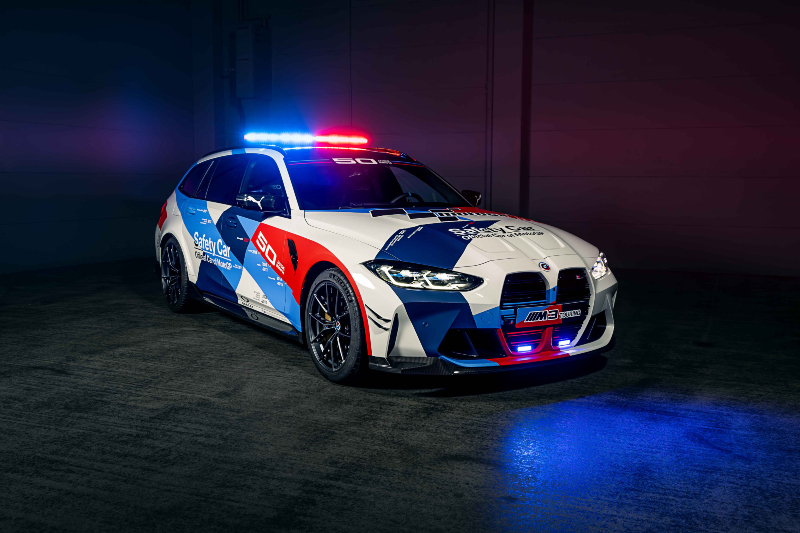 A BMW M3 Touring MotoGP™ Safety Car karosszériaborítása a BMW M GmbH fennállásának 50. évfordulója, illetve a MotoGP™ oldalán kialakított több évtizedes partnerség előtt tiszteleg: a jubileumi matricázás mellett az autón a sorozat összes biztonsági autójának neve feltűnik, 1999-től egészen napjainkig.
