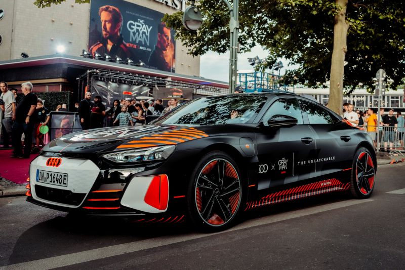 A teljesen elektromos Audi RS e-tron GT* Sierra Six (Ryan Gosling) autója, az ugyancsak teljesen elektromos Audi Q4 Sportback e-tront* pedig Dani Miranda ügynök (Ana de Armas) vezeti. Az Audi RS 7 Sportback* egy autós üldözésben látható, a kormány mögött Dani Miranda ügynökkel, az Audi R8 Coupé* pedig Avik San (Dhanush) egyik jelenetében szerepel