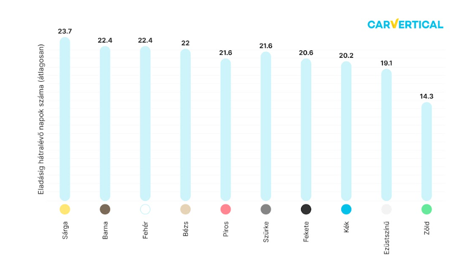 „Világosan látható, hogy Magyarország kivételt jelent a régióban azzal, hogy a zöld szín a toplistás az autóeladás gyorsasága tekintetében. Még a környező országokkal, például a Cseh Köztársasággal összehasonlítva is szembeötlő, hogy a zöldszínű autók fogynak a leggyorsabban. Míg hazánkban egy zöld autó eladásához nagyjából két hét szükséges, Csehországban az adásvétel túlnyomórészt csak három hét múlva bonyolódik le” – árulja el Matas Buzelis, a carVertical kommunikációs vezetője.