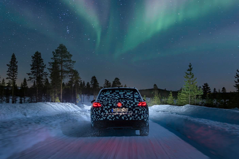 Átfogó műszaki és optikai frissítéssel írja tovább az idén a Volkswagen az immár több mint egymillió példányban értékesített Touareg sikertörténetét. Egyaránt áttervezték a luxus-SUV elejét és hátulját, a továbbfejlesztett futómű pedig a kényelem és a teljesítmény együttesével kelt mély benyomást. A nyári világpremier előtt a Volkswagen most ízelítőt ad csúcsmodellje frissítéseiből. Még álcázott külsővel futja utolsó tesztkilométereit a svéd Lappföldön az új Touareg. Az álcaruha valójában egy hatalmas QR-kód pixeleiből áll, amely okostelefonnal beolvasva a Volkswagen Touareg internetes oldalára vezet, további információkat kínálva az új Touaregről. Noha dizájn-fejlesztései egyelőre a QR-kód fóliája alatt rejtőznek, az „álruhás királyfi” képei már konkrétan utalnak az első műszaki részletekre. Jó példa erre az orrkialakítás ahol jól láthatók az új fejlesztésű IQ.LIGHT HD-mátrixfényszórók, valamint egy szintén új LED-fénysáv elemei. 38 400 mikro-LED alkotta IQ.LIGHT HD-mátrixfényszórók.