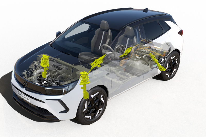 A futómű és a kormányzás fejlesztései nem korlátozódtak csak a GSe modellekre, hiszen a mérnökök valamennyi Grandland modellváltozat lengéscsillapítóit és kormányművét finomhangolták. Kis rugózási sebességeknél megnőtt a csillapítás mértéke, miközben a középtartományban és feljebb lecsökkent, így a legrosszabb felületeken is maximális a menetkomfort. A finomításoknak köszönhetően a Grandland minden helyzetben kiegyensúlyozott, stabil és kényelmes viselkedésű.