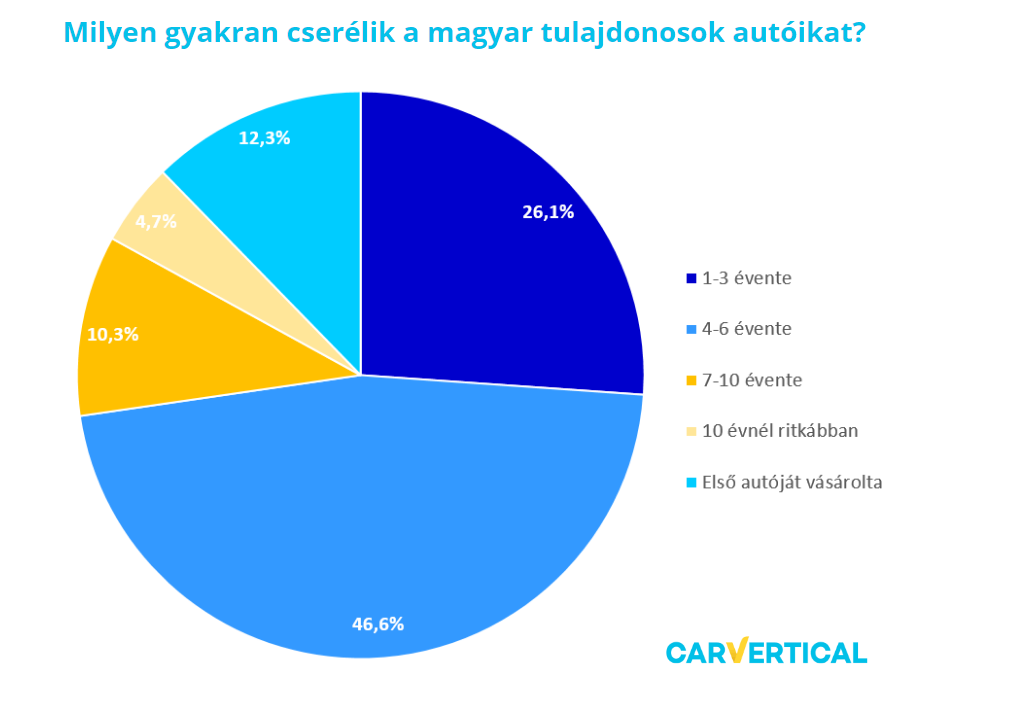 A magyar autóvásárlók közel fele (46,6 százalék) 4-6 évente cseréli járművét, ez az arány több mint