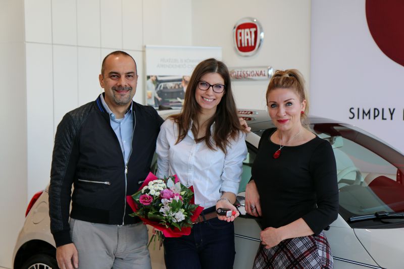 „Szerelem volt első látásra! Egy stílusos, kompakt, belvárosban is könnyen használható, kényelmes és biztonságos kisautót szerettem volna, amit a Fiat 500-as Collezione modelljében meg is találtam. De a design tekintetében sem utolsó ez az autó: a csodálatos pasztellszínek, valamint a metál- és gyöngyházfényezés választéka mellett az egész belső kialakítás személyre szabható volt, így tényleg egy egyedi ékszerdoboz tulajdonosává váltam. Természetesen számos biztonsági felszereltség is belekerült, mert az is nagyon fontos a számomra, hogy biztonságban érezzem magam az autómban. Megnyugtató a tudat, hogy a Duna Autó segítségével felelős döntést hozhattam, mert nekem az autó bizalmi kérdés” – árulta el a táncművész, aki az átadás után már sietett is színházi főpróbájára. Balesetmentes, biztonságos közlekedést kívánunk Lucának! Hiszen az autó nekünk is bizalmi kérdés.